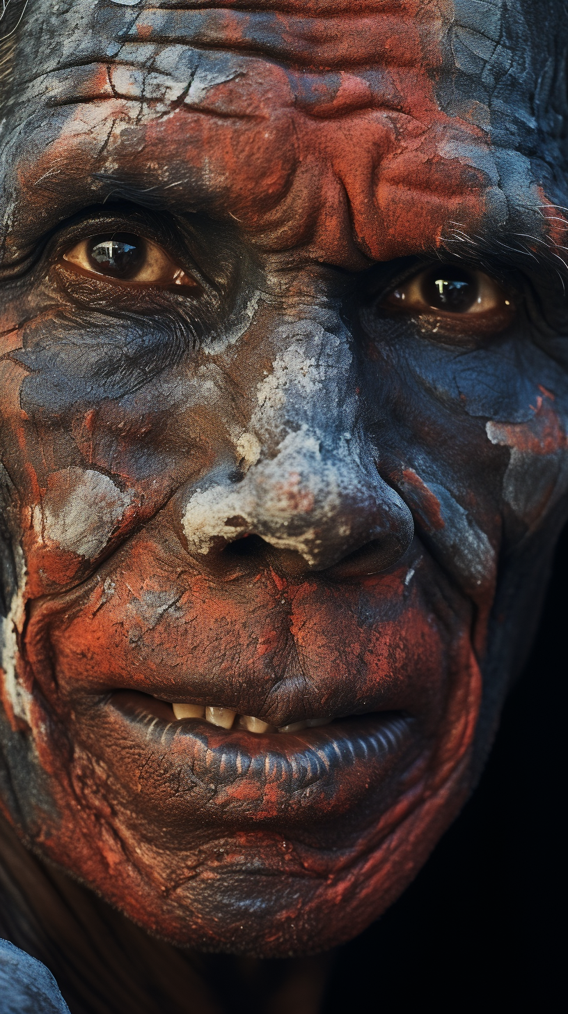 Identical images of an elderly aboriginal Innuit man with a painted face, one at the old maximum resolution, one at the new 4x upscale.