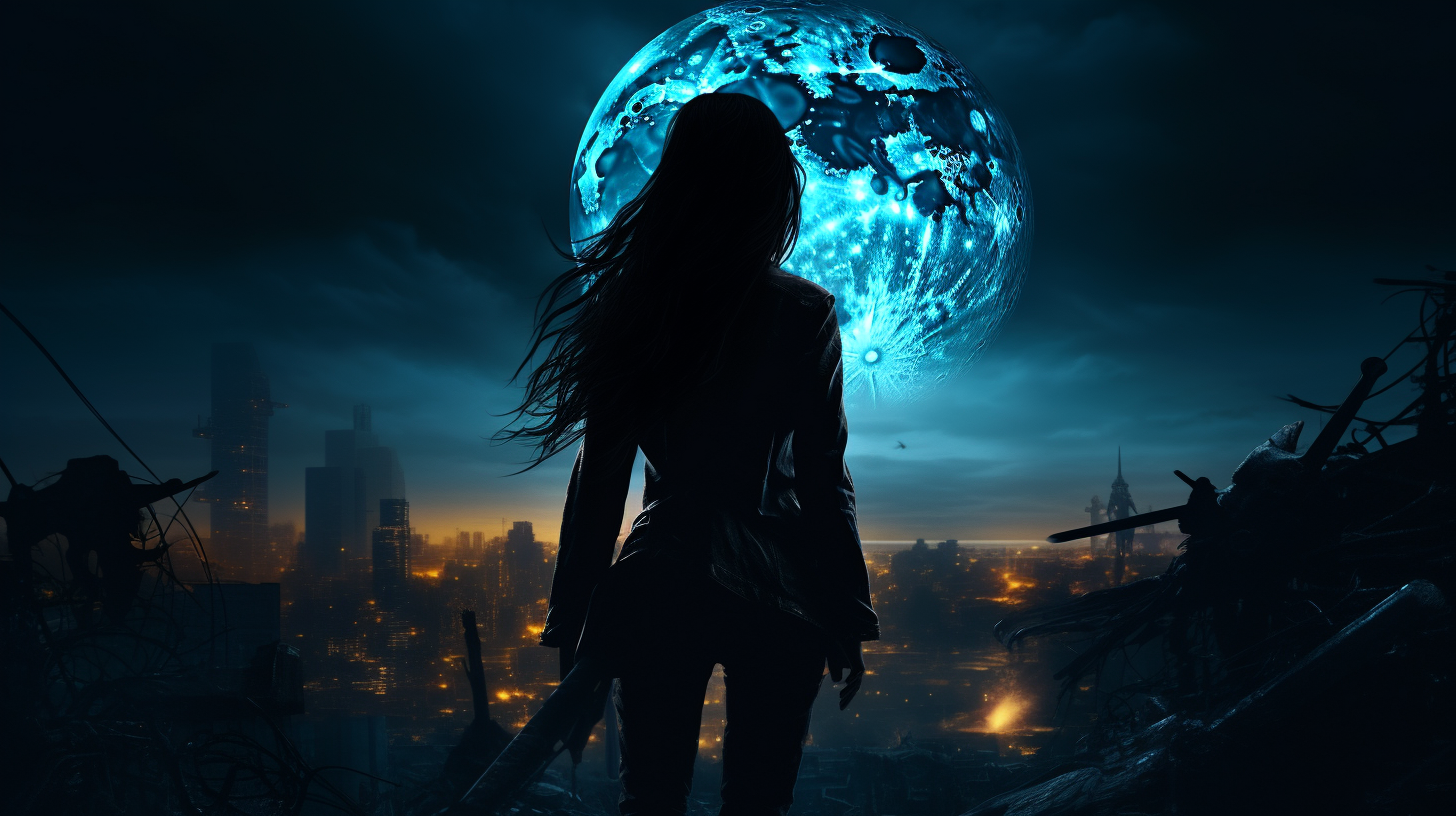 Identical images of a female silhouette facing a giant bright moon, one at ~720p, one at ~4k resolution