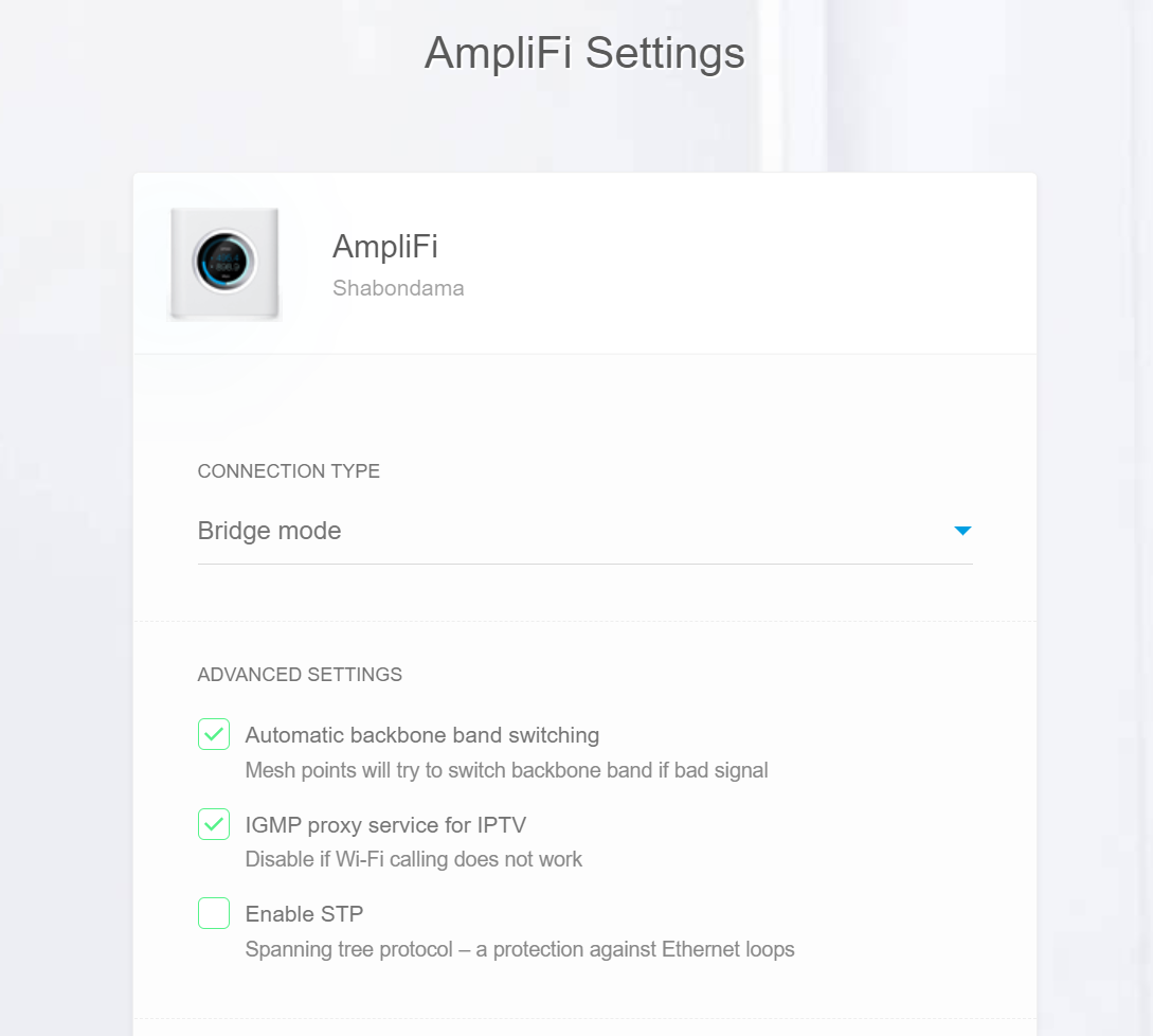 - Bridge mode also removes the ability to assign named devices on the AmpliFi to an individual's profile (unsure why)