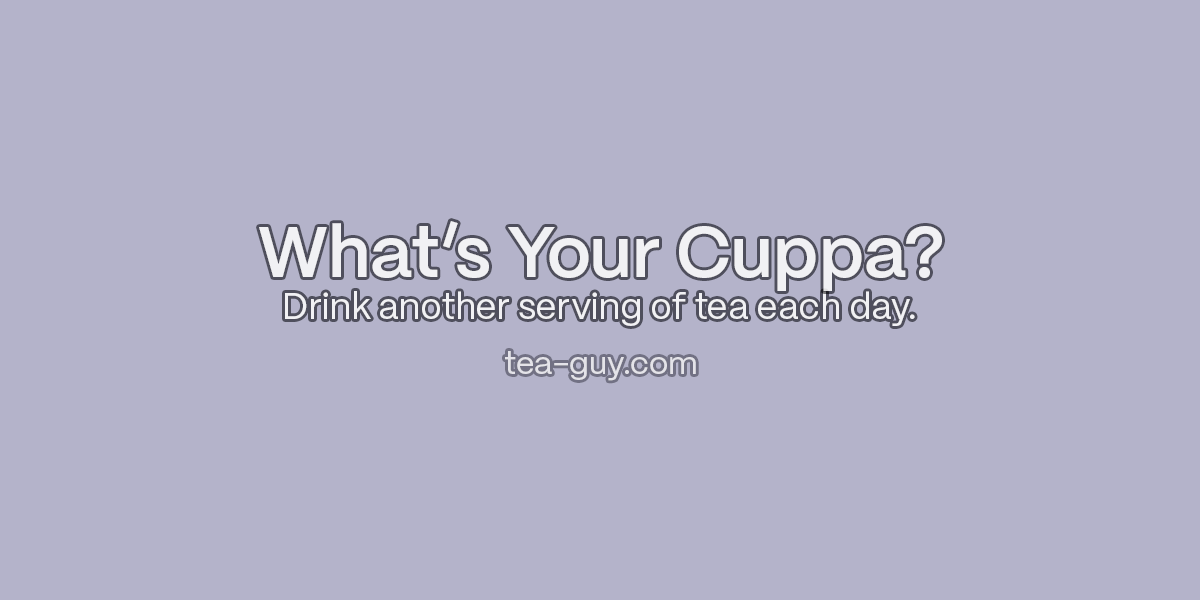 The images have been altered to include the marketing tag "What's your cuppa?" and the tea-guy.com web URL, which leads back to this website, specifically to the "tags" page for my tea-related posts.