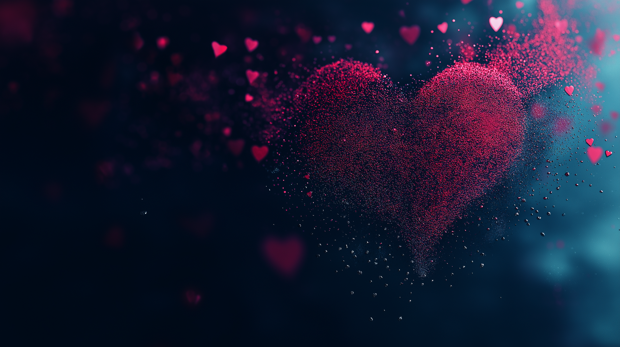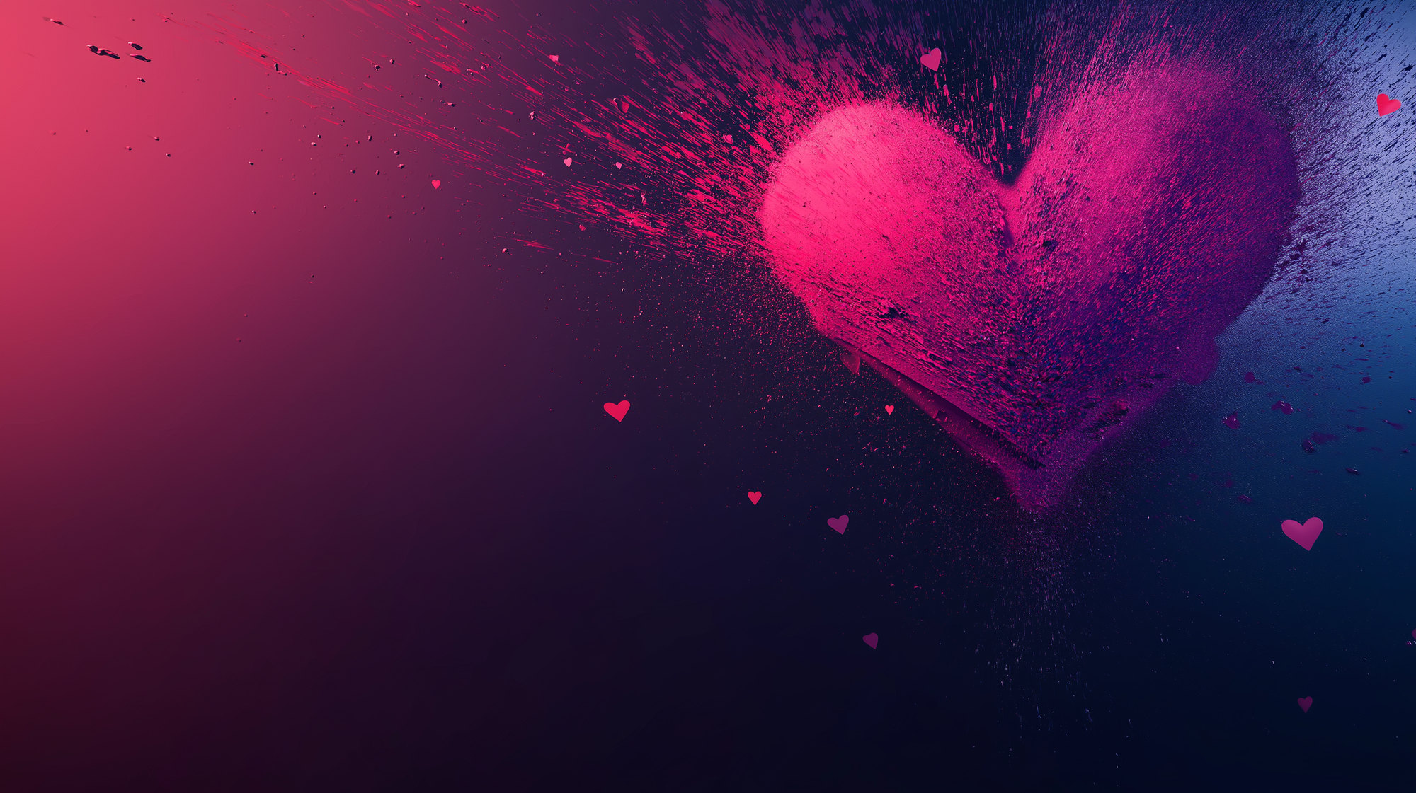 Blitzit Valentine's 💜 Beats offers energizing, chill electronic tracks with smooth beats and ambient vibes - ideal for staying focused and motivated as you work through tasks. Perfect for deep work sessions. A dark-mode image focused on hearts. In the style of award-winning album art for later 1990s ambient electronic music. --ar 16:9 --profile m4z3rfh