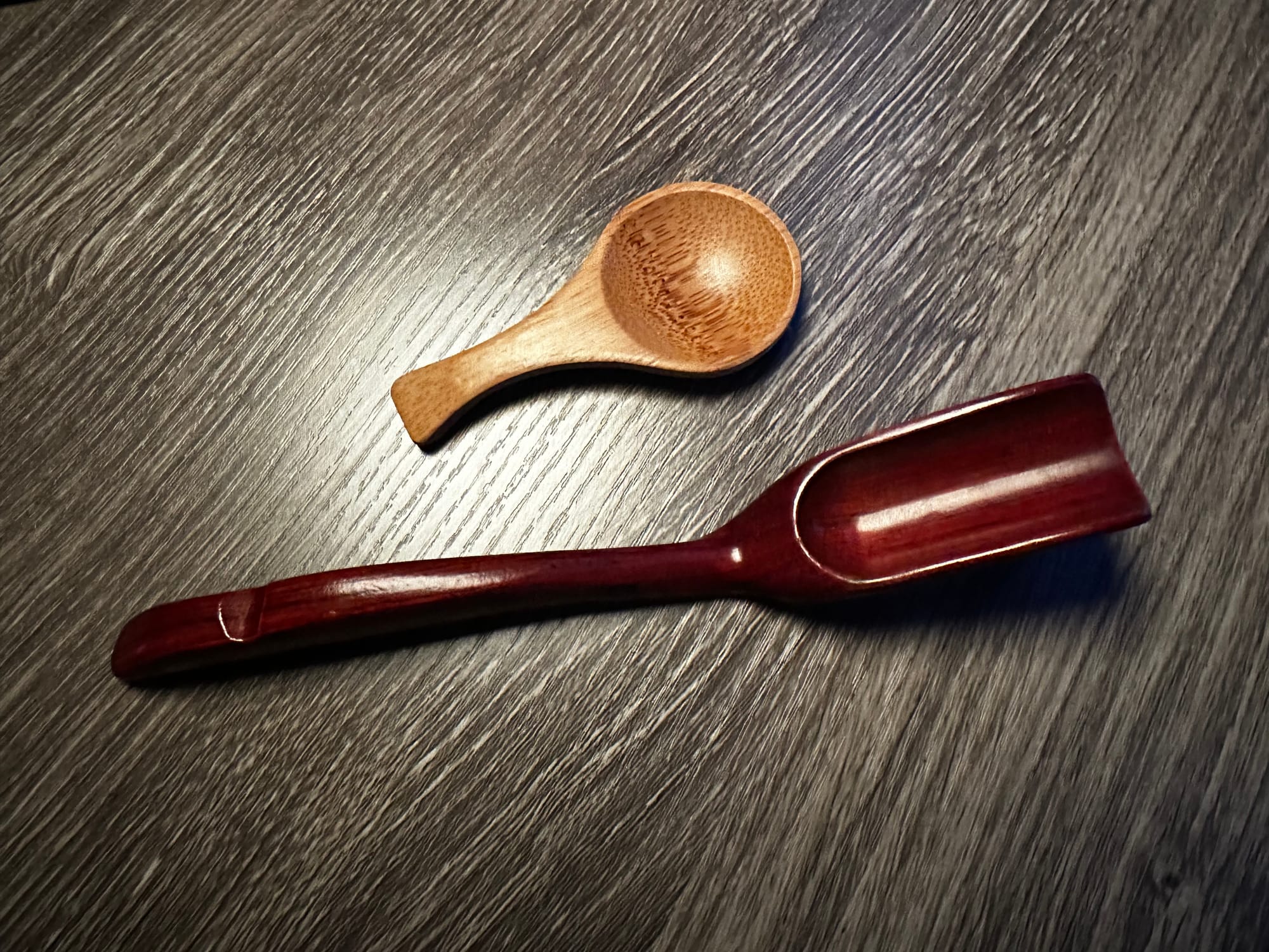 Instead, I opt for a tea "scoop". These also have variations in style and material, though I generally opt for wooden scoops with either a rounded or elongated trough. I don't empirically know that they're better at protecting the leaves, but my brain sure thinks they do.